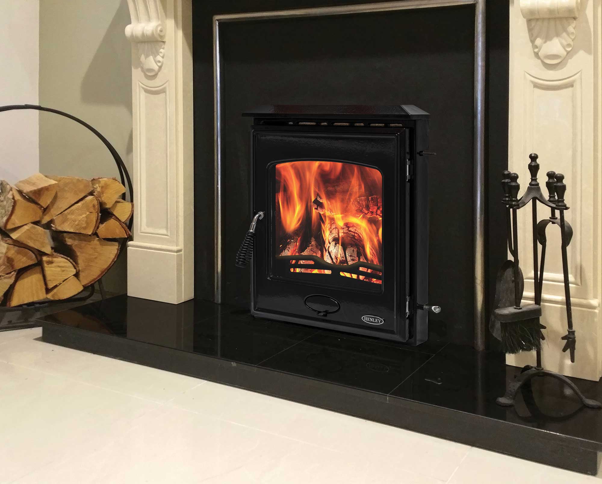 All Henley stoves come with an air wash system which helps to keep the glass clean. It uses a specially placed vent or vents to draw in air from the outside which will wash over the front of the glass.