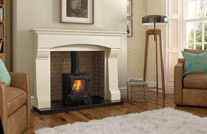 The Thames 4.5kW multi fuel stove was designed specifically to fit under a standard 16″ fireplace opening. It is ideal for those awkward cast iron canopies or if you do not have much space on your hearth. Manufactured from steel with a cast iron door this stove boasts an efficiency of 79%.