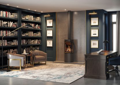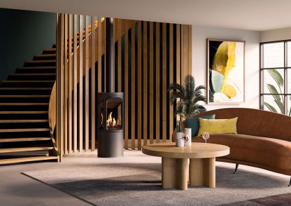 Beyond the sweeping curves and clean lines of this remarkable gas stove, front and side glass panels showcase the Onyx Liv 3’s panoramic flames, providing 180° views for maximum visibility. Inside, life-like flame burner technology creates a tall, lazy fire which dances through highly realistic log effect fuel bed.